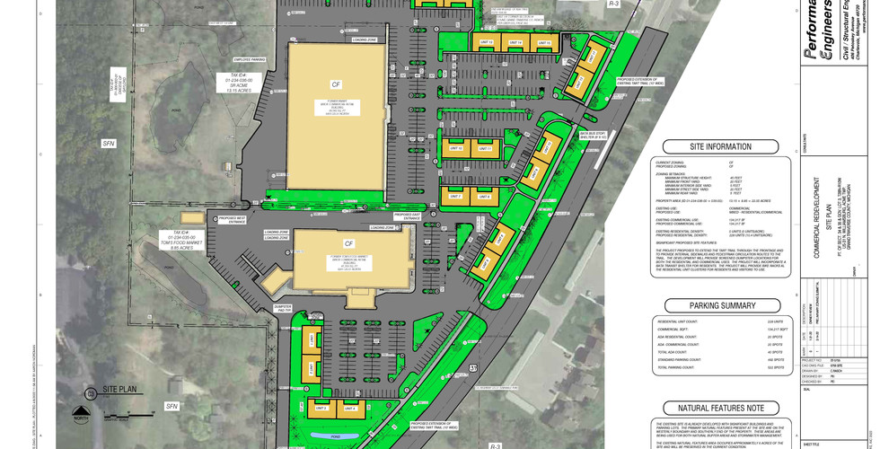 Strathmore Real Estate Group has commenced seeking approval for the redevelopment of the former Kmart and Tom's Grocer located in Acme Township near Traverse City, Michigan. Situated on approximately 22 acres, the adaptive reuse of these existing facilities will facilitate 228 residential apartments, ecommerce retail, flex office and warehouse, health and fitness facilities including an indoor pickleball club, and climate-controlled self-storage.